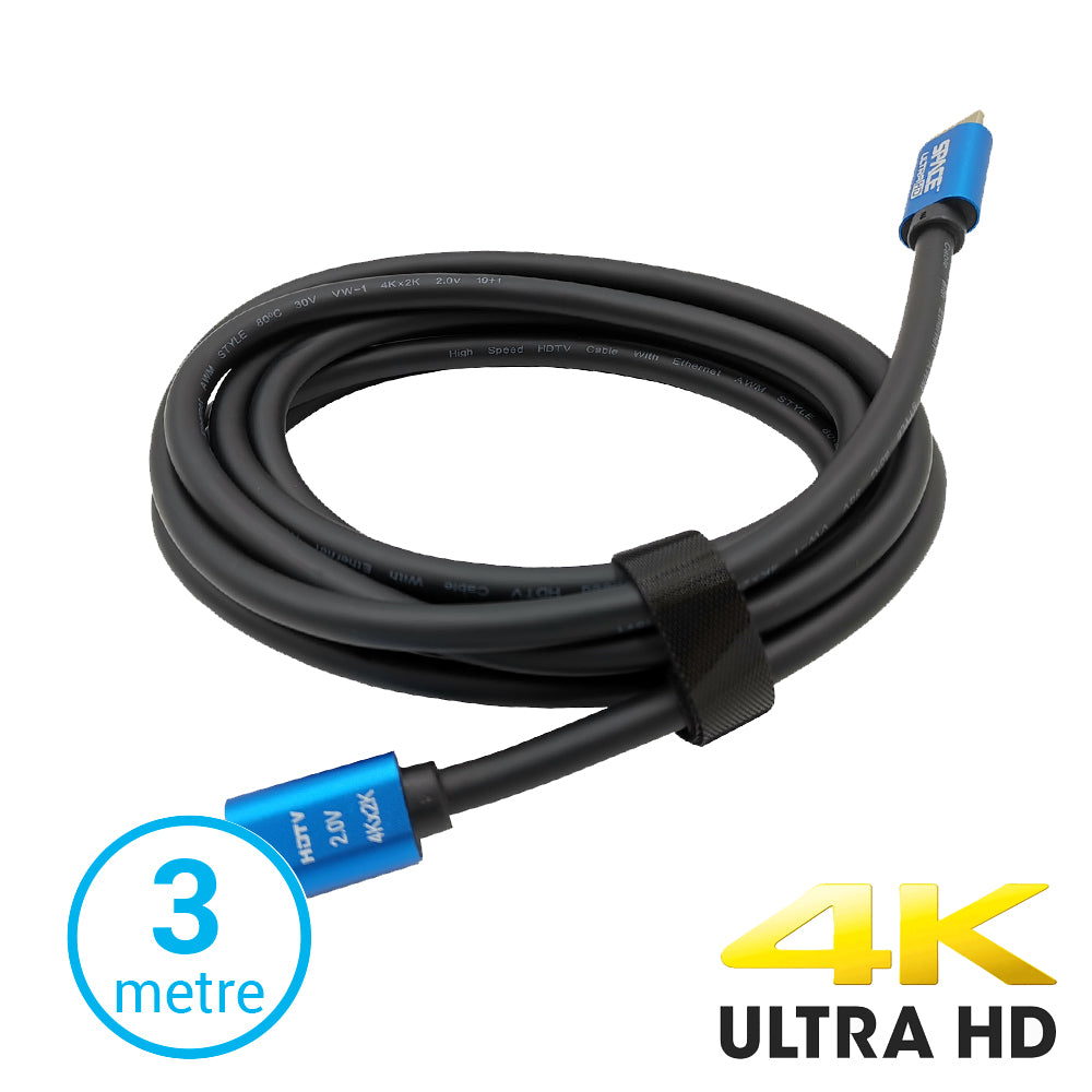 Cable HDMI 2.0 Premium 3m de alta velocidad con soporte 4K Ultra HD 2160P a 60Hz, HDR y audio envolvente. Ideal para Smart TV, consolas y PC.