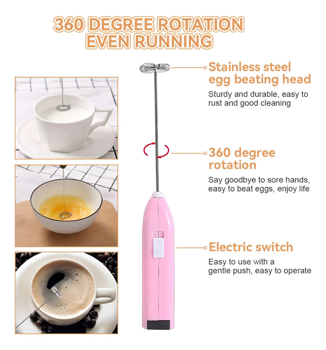 Batidor portátil de tamaño compacto alimentado por pilas, perfecto para preparaciones cotidianas. Bate café, huevos, leche y otras mezclas con rendimiento confiable sin depender de enchufes. Su diseño ergonómico facilita el manejo en una sola mano, mientras que la tecnología de batido garantiza resultados uniformes. Ideal para quienes buscan practicidad y eficiencia en la cocina, con la ventaja de poder utilizarlo en cualquier lugar.