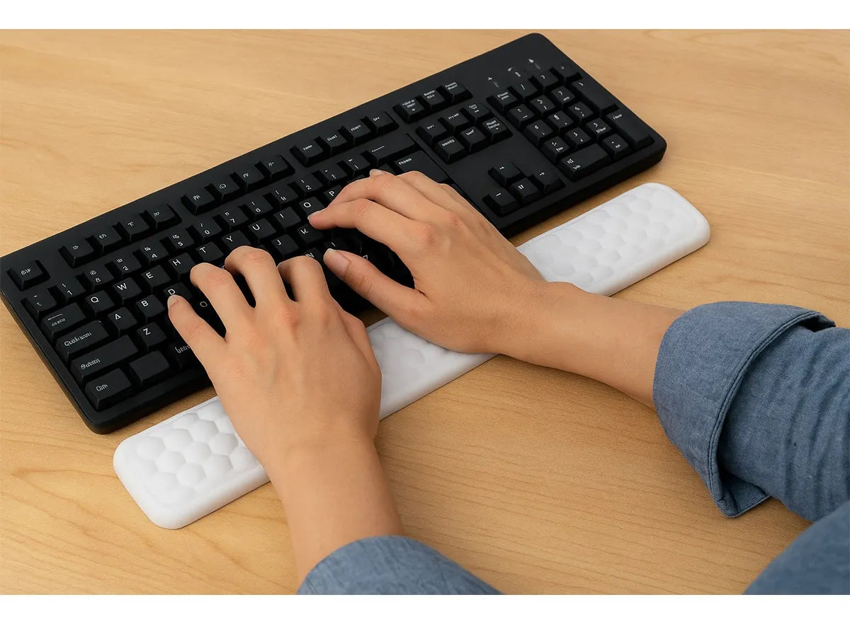 Diseño ergonómico profesional: Mantiene su muñeca en una posición natural y cómoda, previene el síndrome del túnel carpiano, fácil de escribir, fácil de trabajar. Materiales premium: 100% rellenos de espuma viscoelástica de rebote lento y superficie suave y sedosa, le brindan una suavidad táctil. Fácil de limpiar: Fácil de limpiar con un paño húmedo sin retrasar el trabajo o el juego. Evita eficazmente daños por derrames de bebidas u otros accidentes. Adecuado: Jugadores, oficinistas, escritores, editores, diseñadores, estudiantes y otras personas que trabajan largas horas en portátiles u ordenadores.